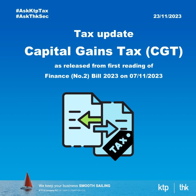 • CGT is to be imposed with effect from 1 January 2024 as indicated in the Finance Bill (No. 2) 2023.