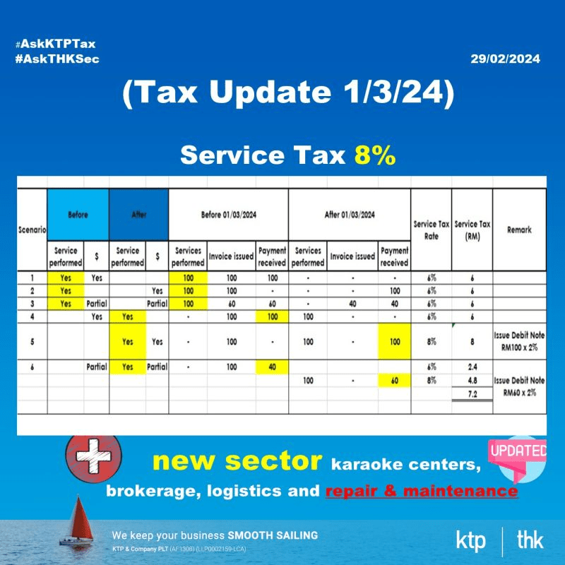 As per Finance Ministry’s Treasury secretary-general Datuk Johan Mahmood Merican told a media that the implementation date of March 1, 2024 for the new service tax applies to existing registered companies that provide existing taxable services and new taxable services.