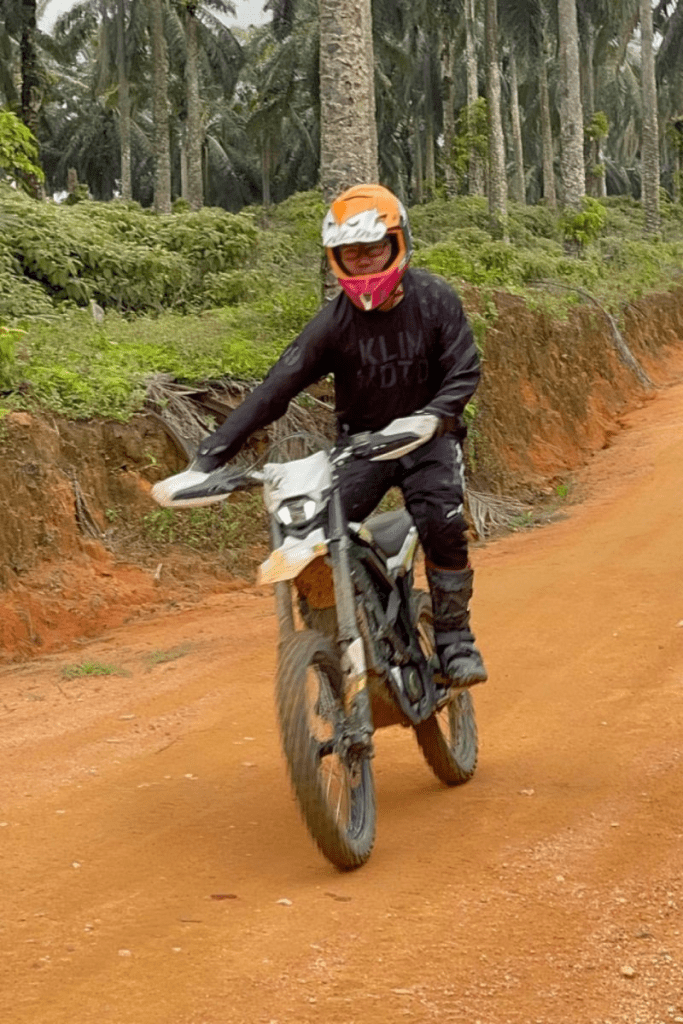 I was really surprised when I found out a new Surron e-bike costs RM29,000. I went ahead and rode it through a place with lots of palm trees and across a river for about an hour and a half.