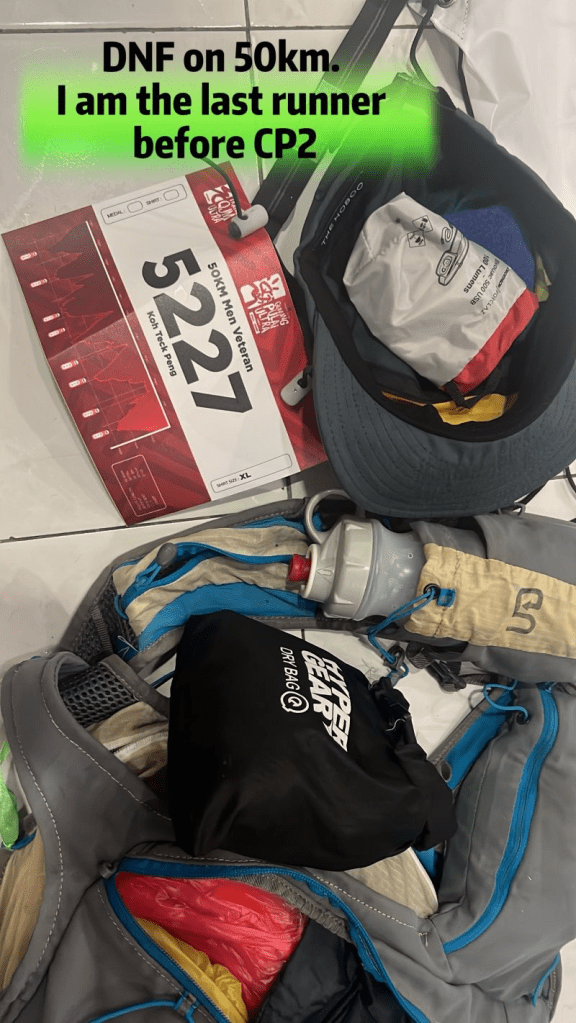 At 31km and 13 hours in, I decided to DNF at CP4. Despite having 10 hours to cover the remaining 19km, the dark sky and tough terrain convinced me to call it a day.