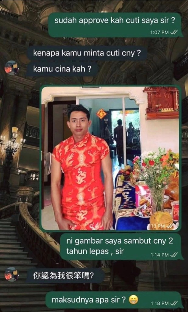 And honestly, when you force only one group of people to “clear leave” because it’s CNY season, it feels like:
